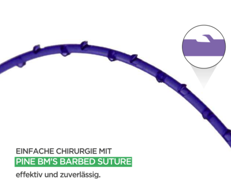 Unidirektional: Widerhaken (Barbs) entlang des Fadens zeigen in eine Richtung, was bedeutet, dass die Naht nur in einer Richtung gezogen und fixiert wird.